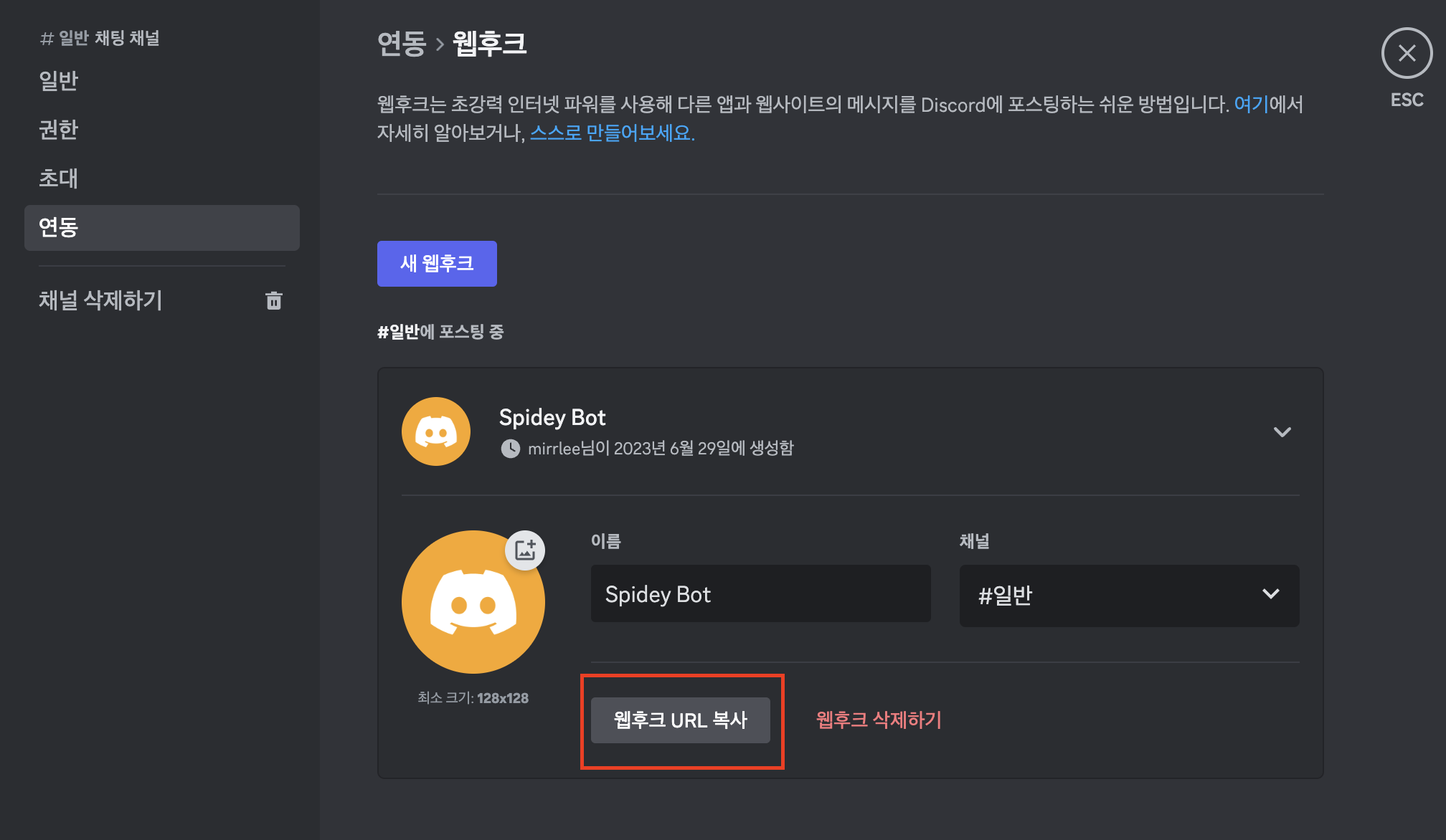 4. Edit Bot Name and Click the "Copy webhook URL"