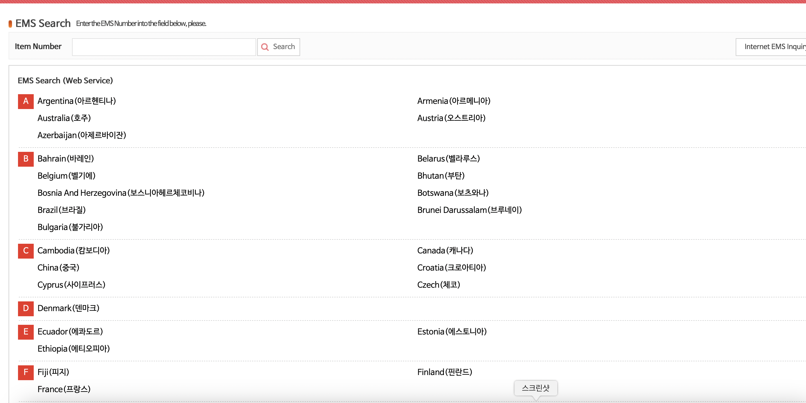 여러개의 나라 리스트가 뜨는데, 보낸 나라를 클릭하면 취급회사의 사이트로 이동되며,