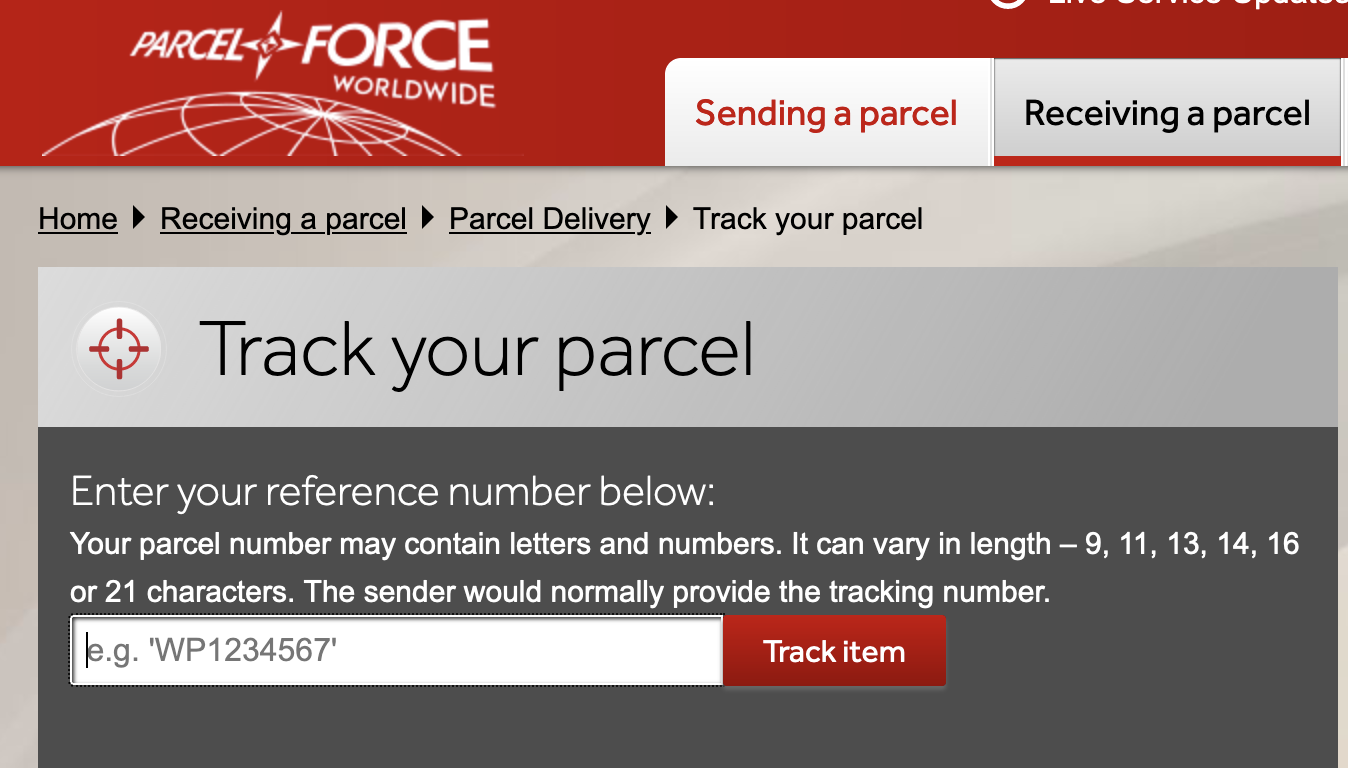 아래는 Parcelforce.com 에서의 추적 시스템 내용이다.