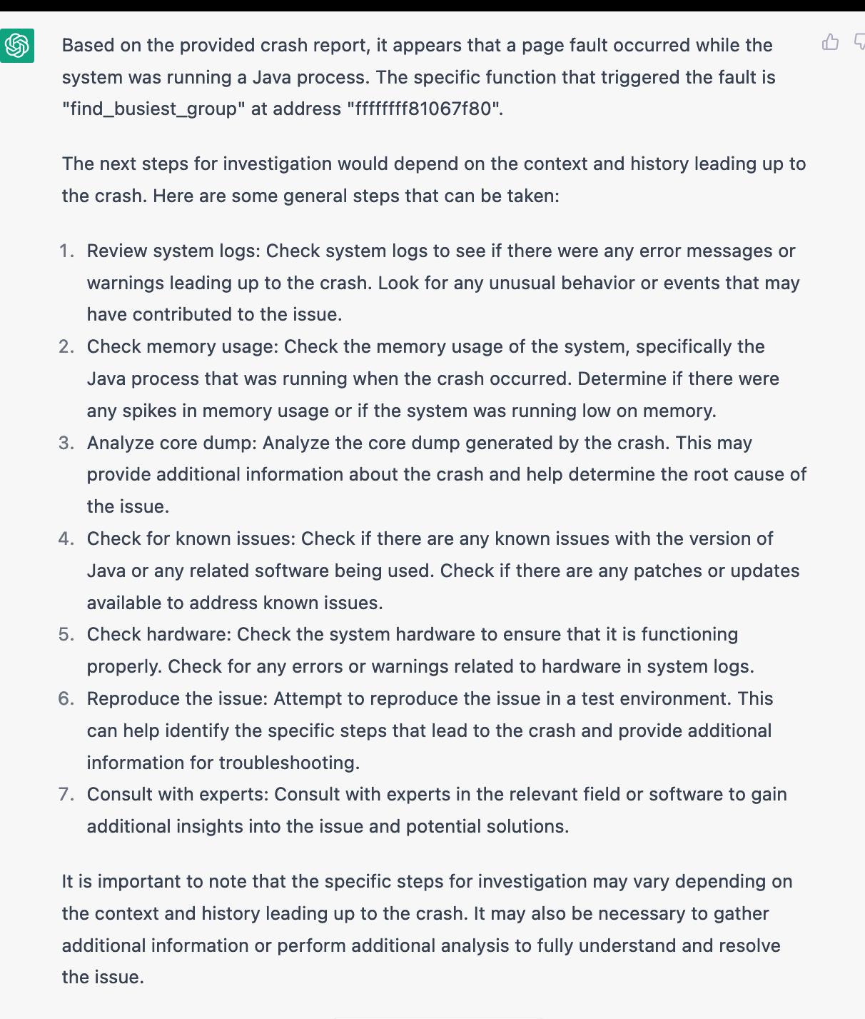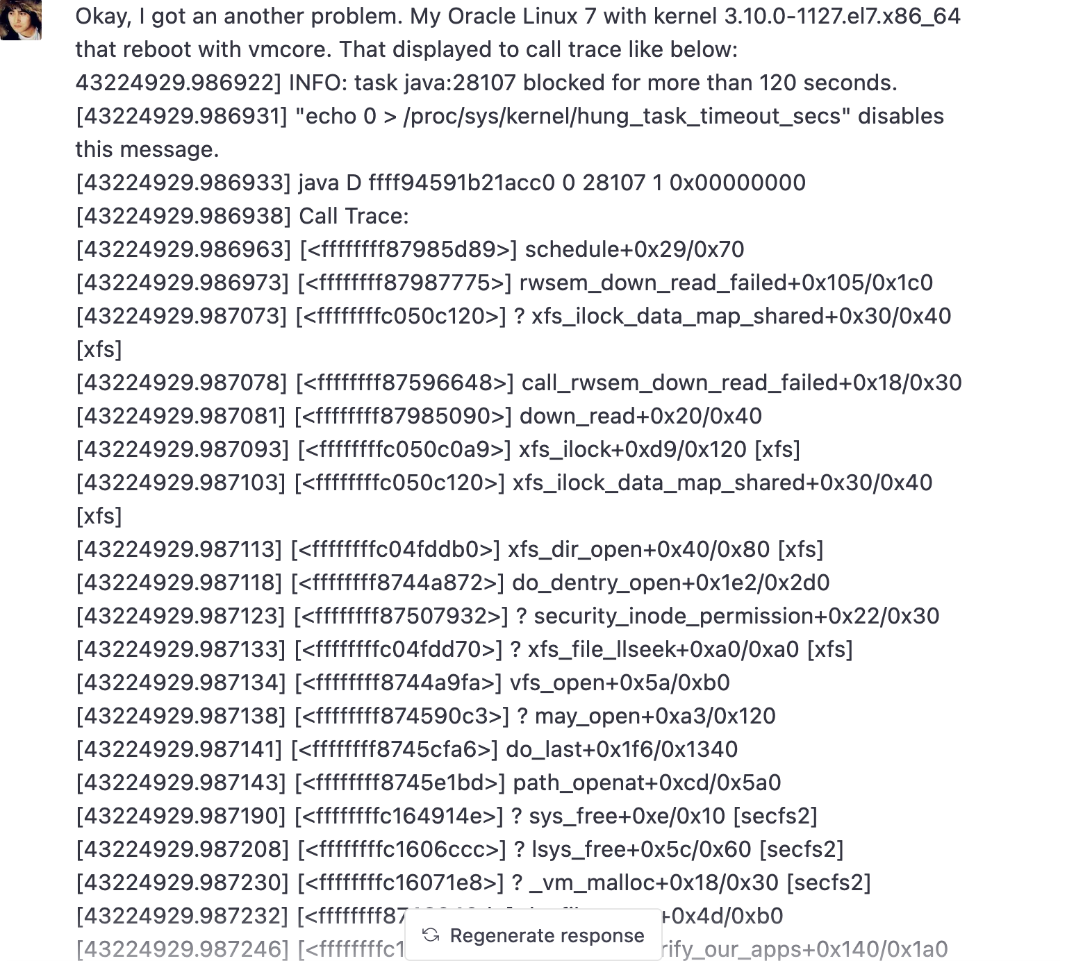 계속 반복된 vmcore 분석을 해라 만 답변 되길래 좀 더 친절하게 물어봐 주기로 했다.